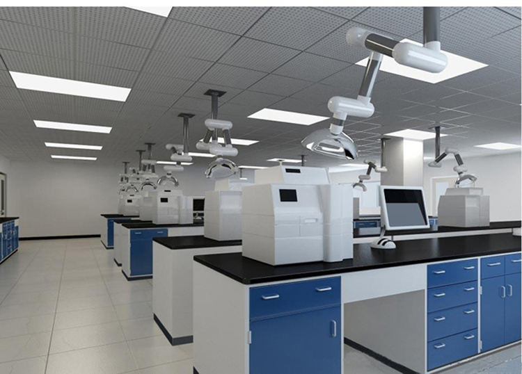 (5)試驗臺:主要由臺面、臺下的支架和器皿柜組成,為了方便操作,臺上可設置樣品架,臺的兩端可安裝水槽。臺面一般寬為750毫米或1500毫米,長度根據房間尺寸,可設置為1500-3000毫米,高度一般為800-850毫米,臺面常用貼面理化板、實心理化板、環氧樹脂板、千思板、陶瓷板等制成。理想的臺面應平整、不易碎裂、耐酸堿及溶劑腐蝕,耐熱,不易碰碎玻璃器皿等。