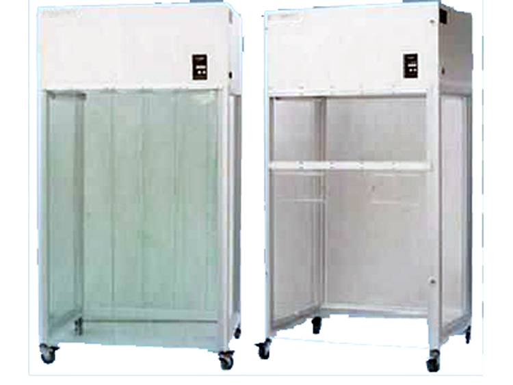 潔凈取樣車上半為送風靜壓箱,下半部為潔凈區,箱體為不銹鋼。送風體內裝有超細玻璃纖維濾料制造的過濾器,多翼前向式低噪音變速離心風機,出風面散流板上安裝照明日光燈及紫外線殺菌燈。為了便于工作人員工作和觀察,潔凈工作區操作面擋板采用透明有機玻璃制作。
